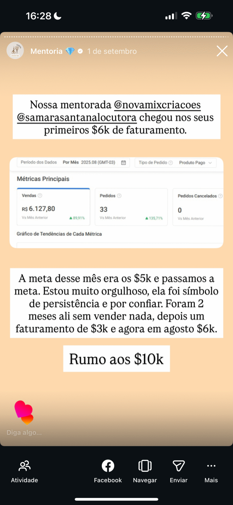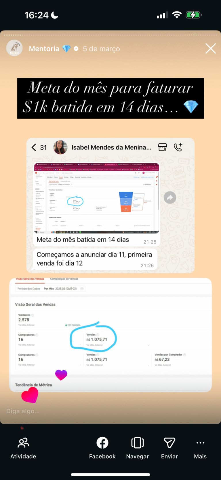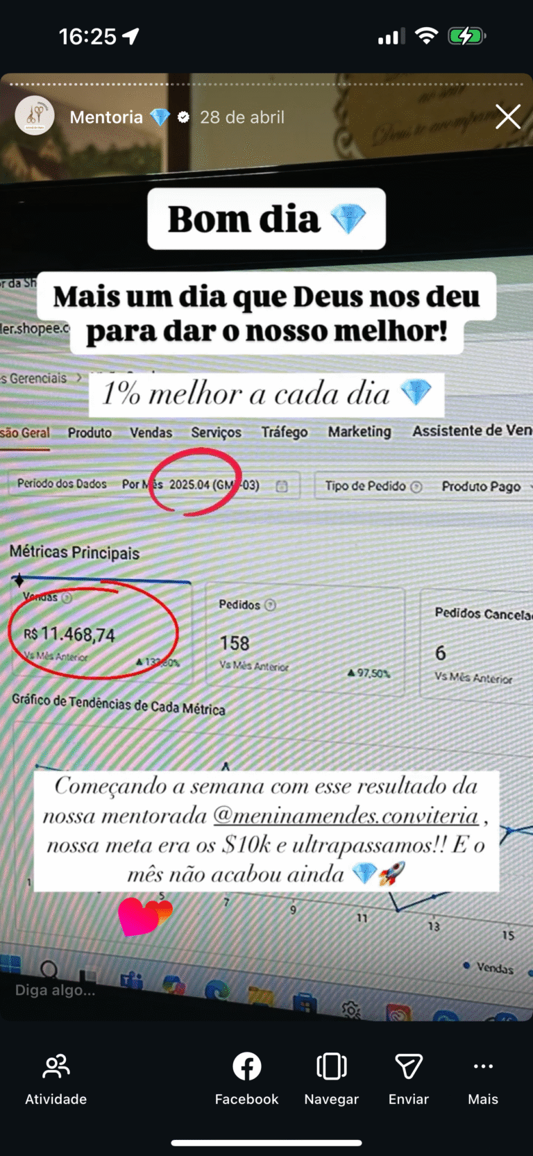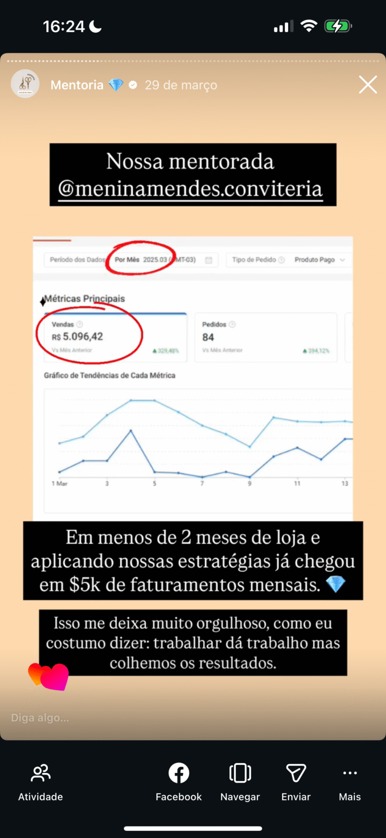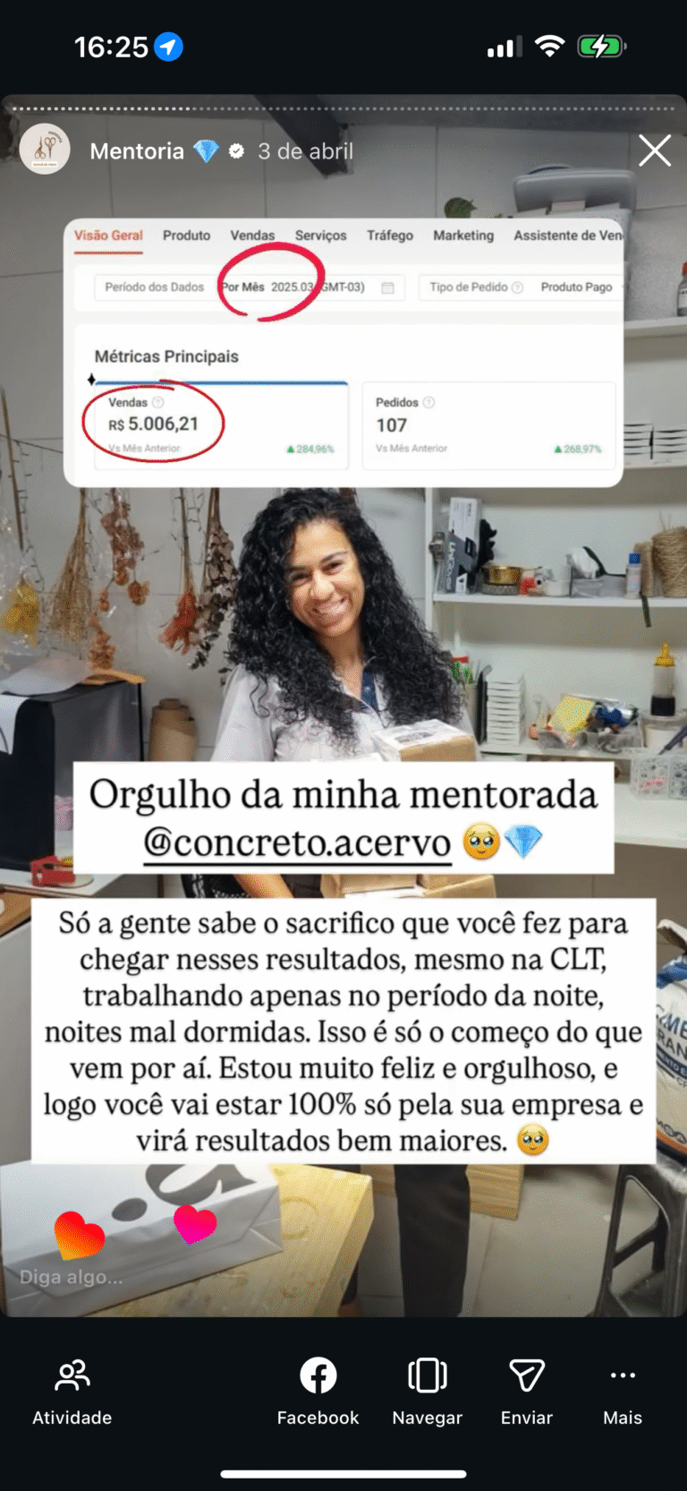 Em março de 2025 passou da sua meta de R$5k de faturamento, chegando a R$6183,49