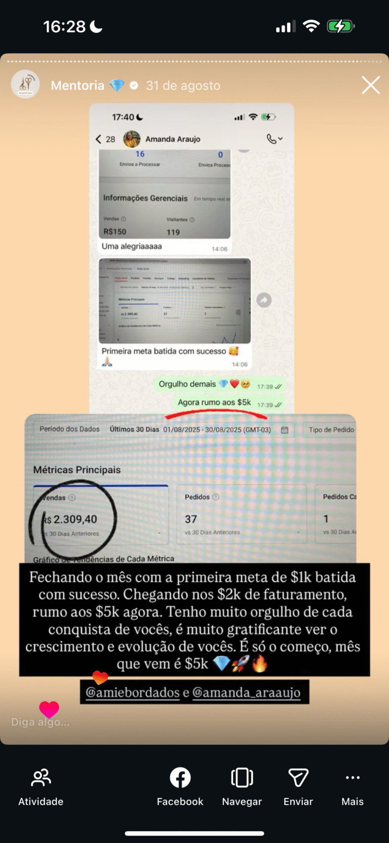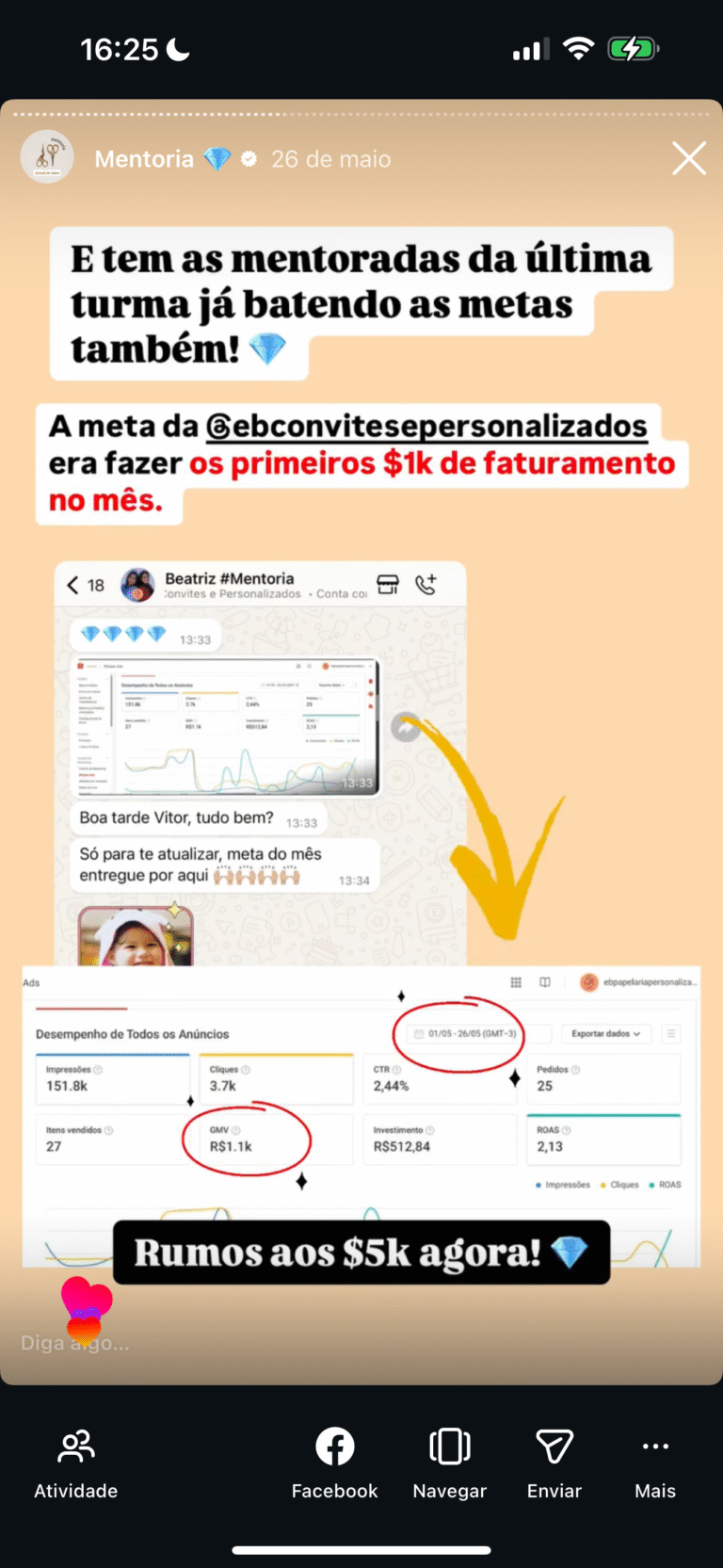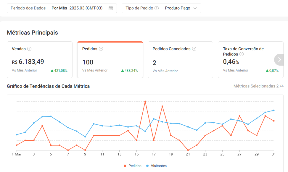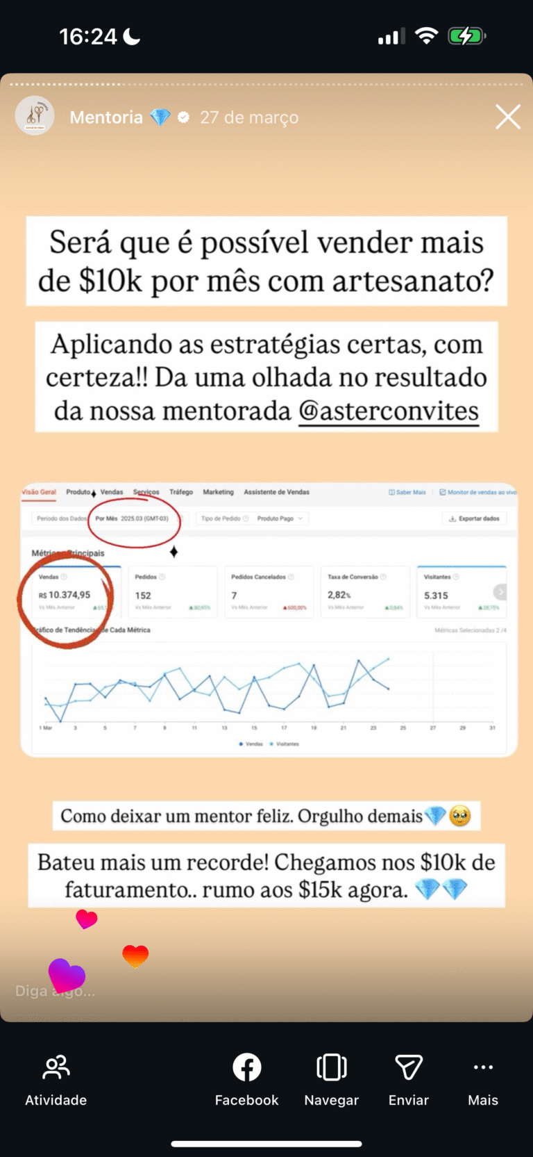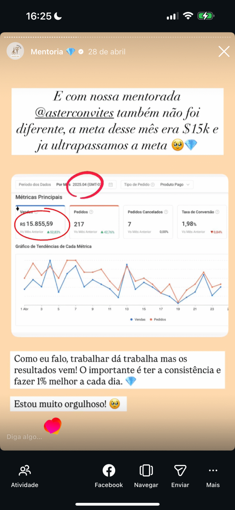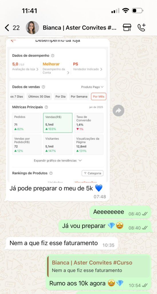 Em março de 2025 passou da sua meta de R$5k de faturamento, chegando a R$6183,49