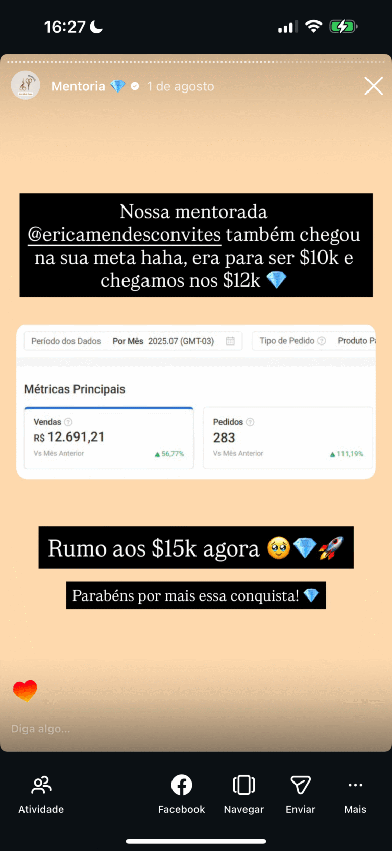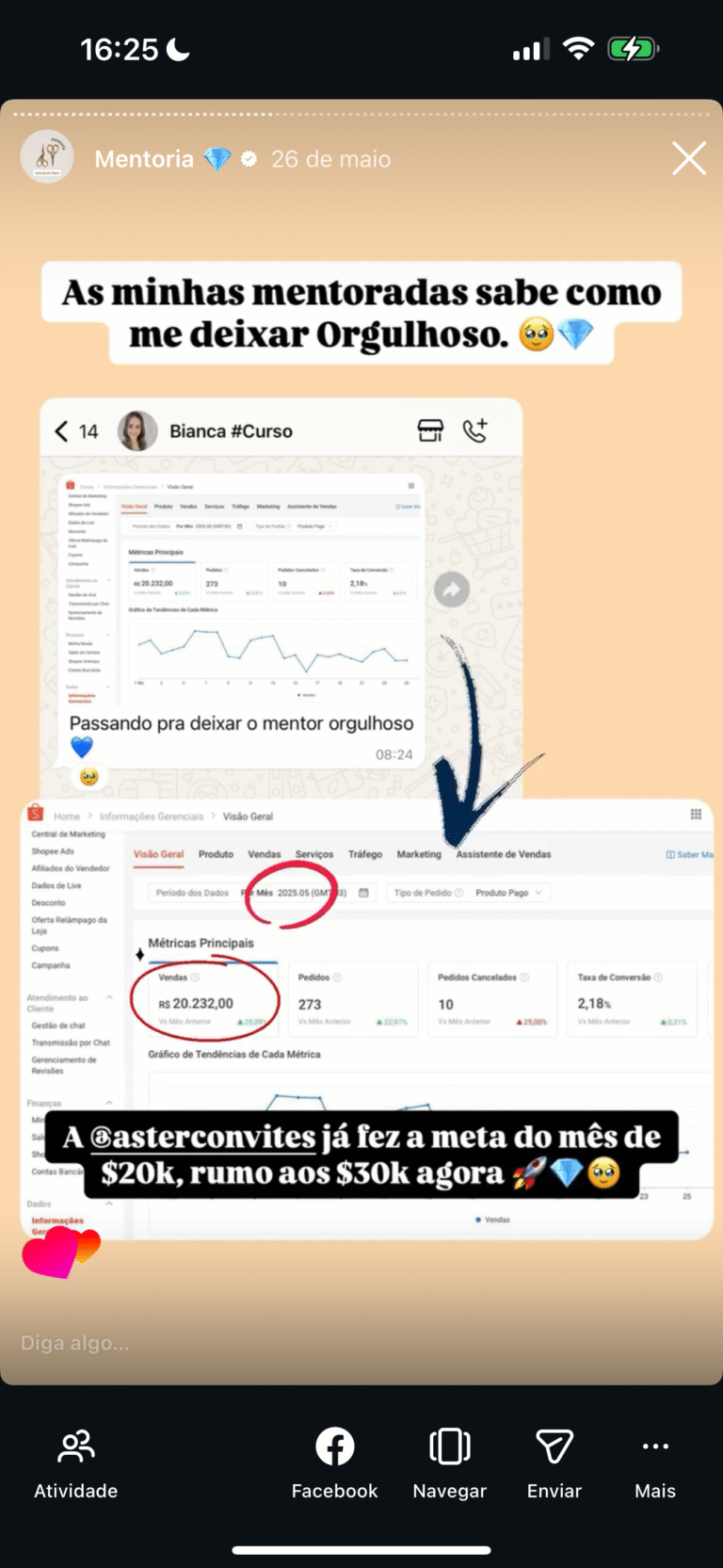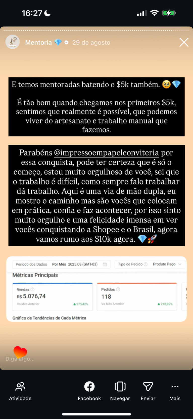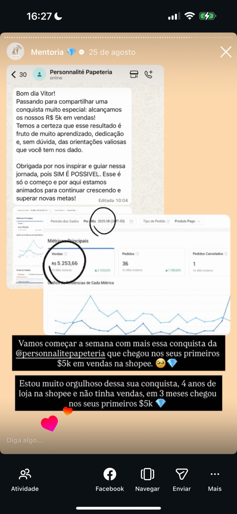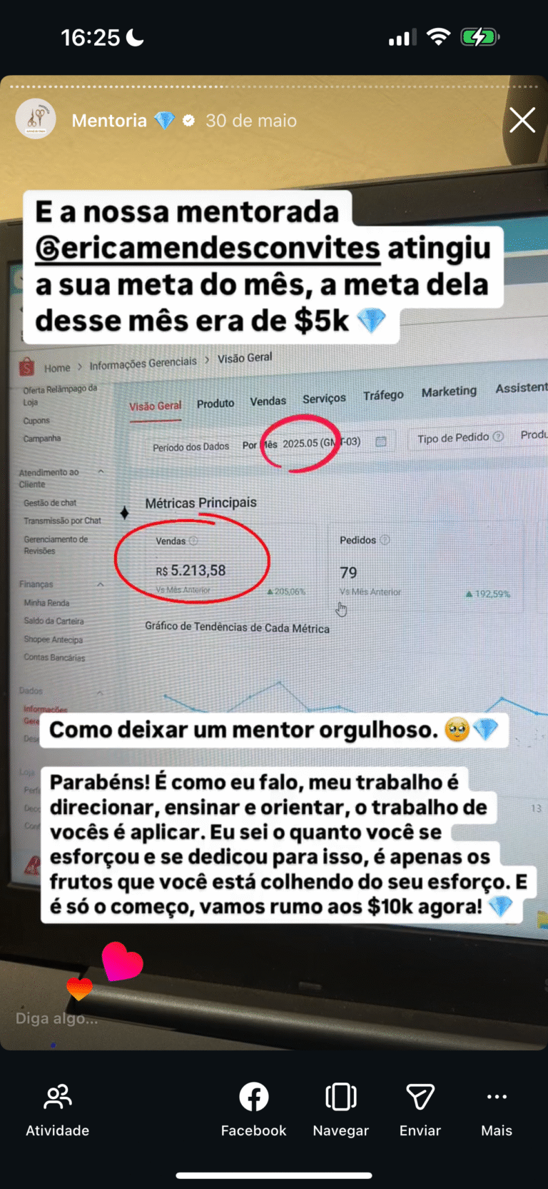 Em março de 2025 passou da sua meta de R$5k de faturamento, chegando a R$6183,49