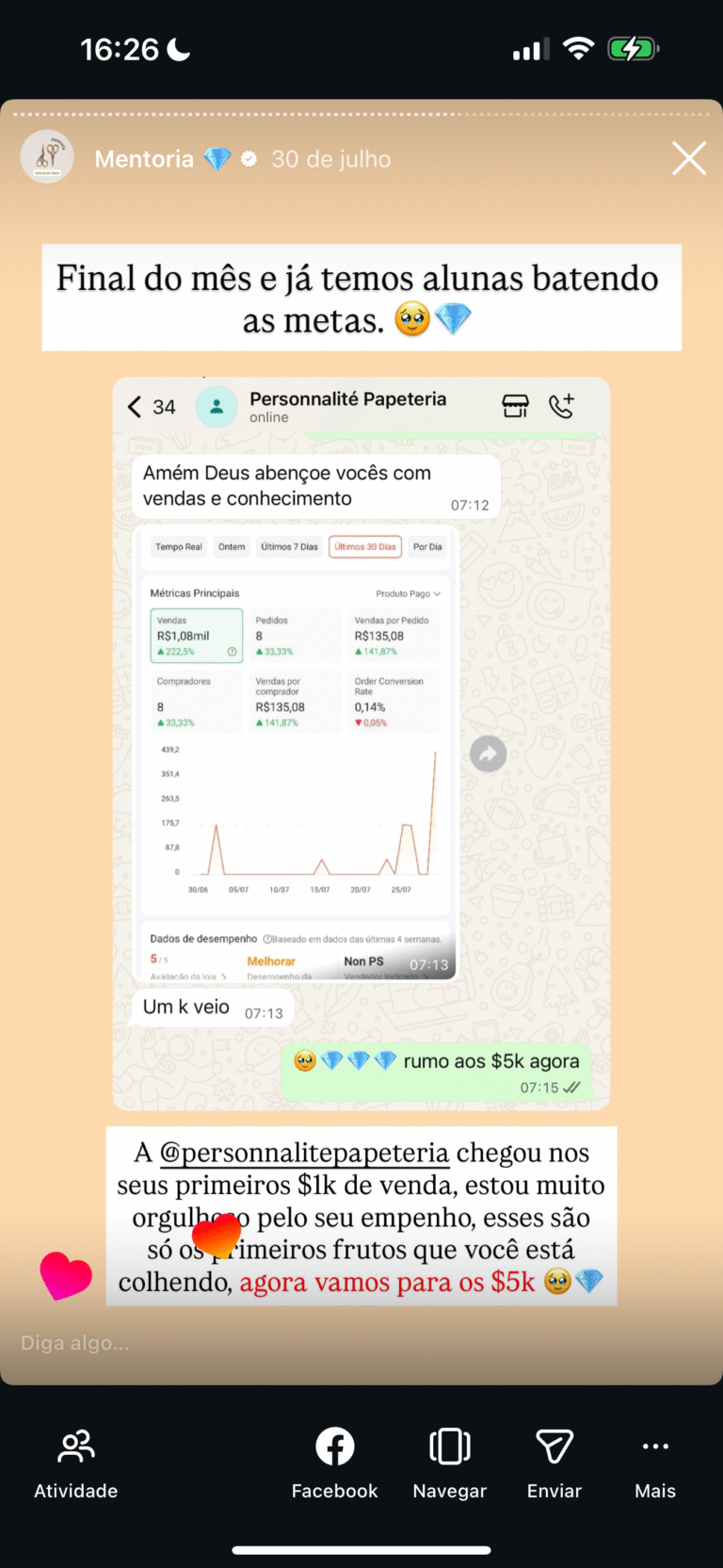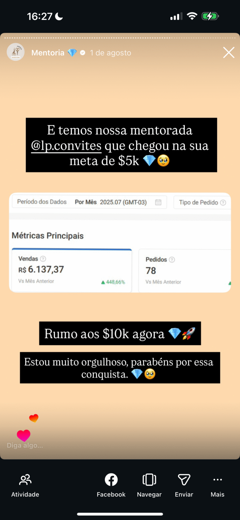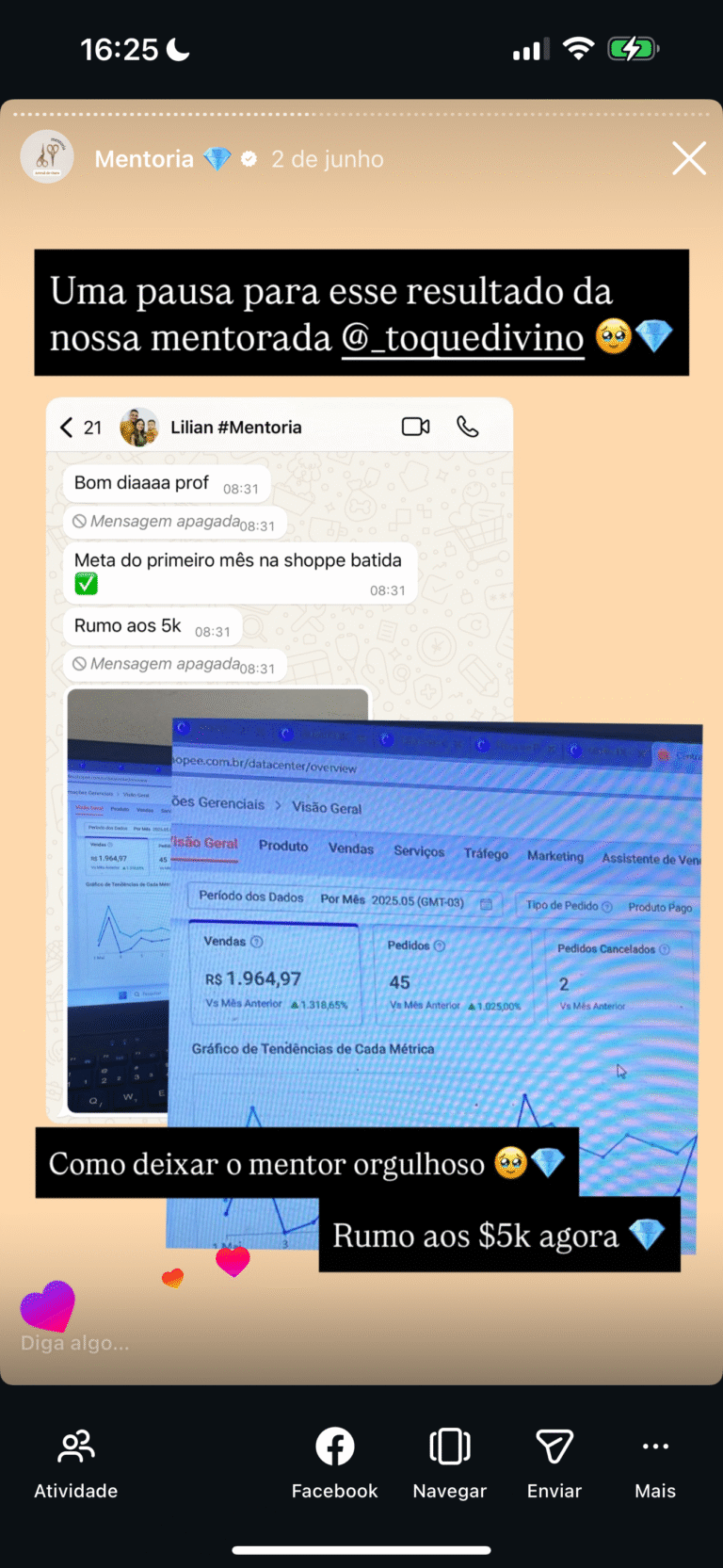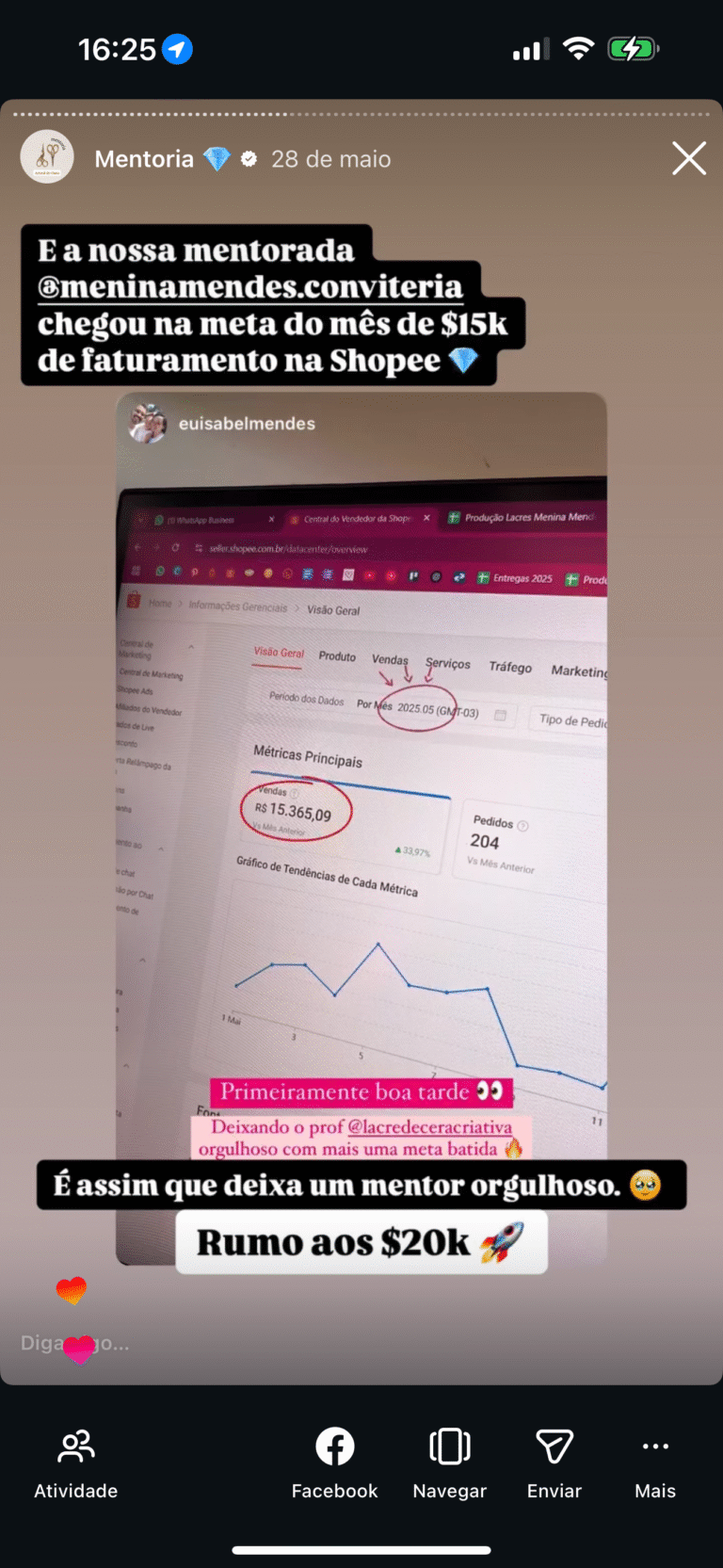 Em março de 2025 passou da sua meta de R$5k de faturamento, chegando a R$6183,49
