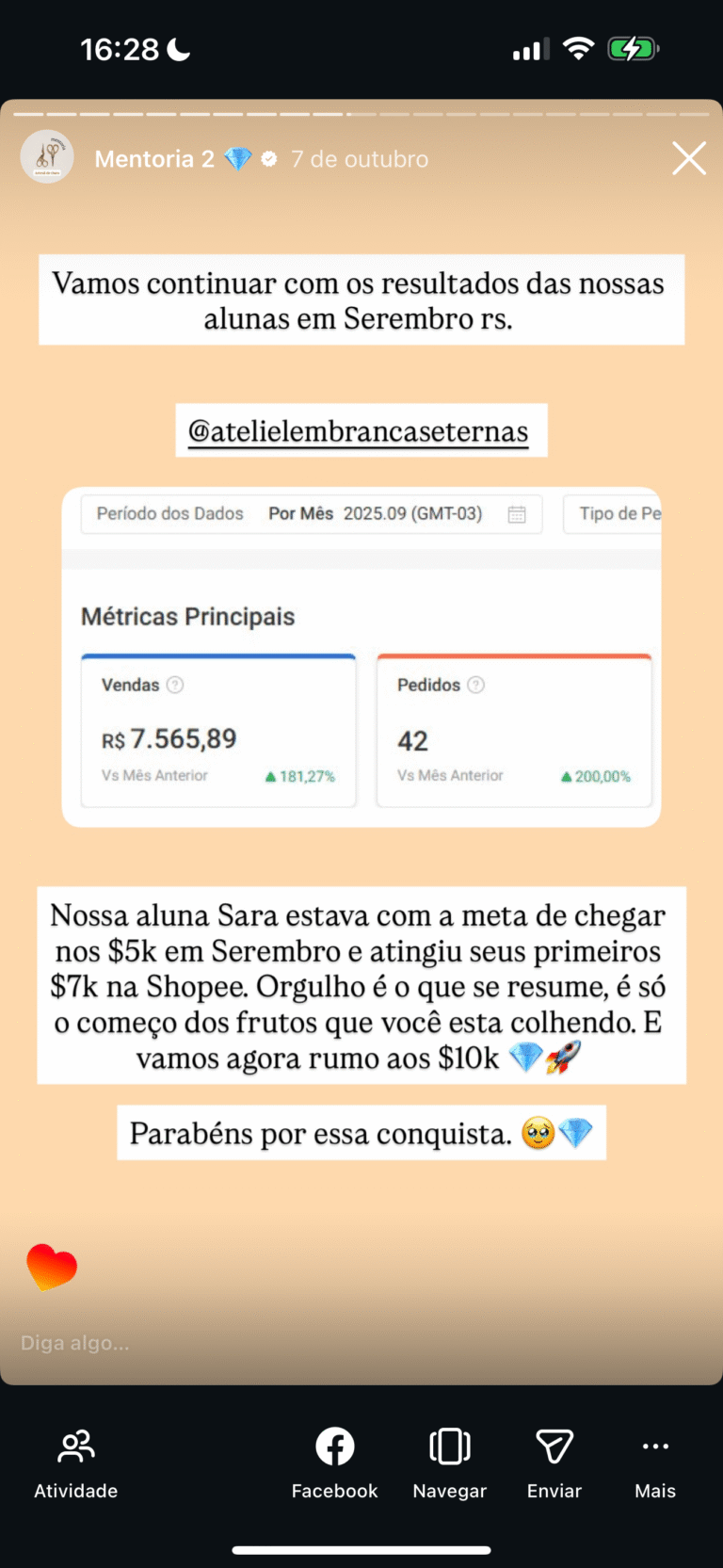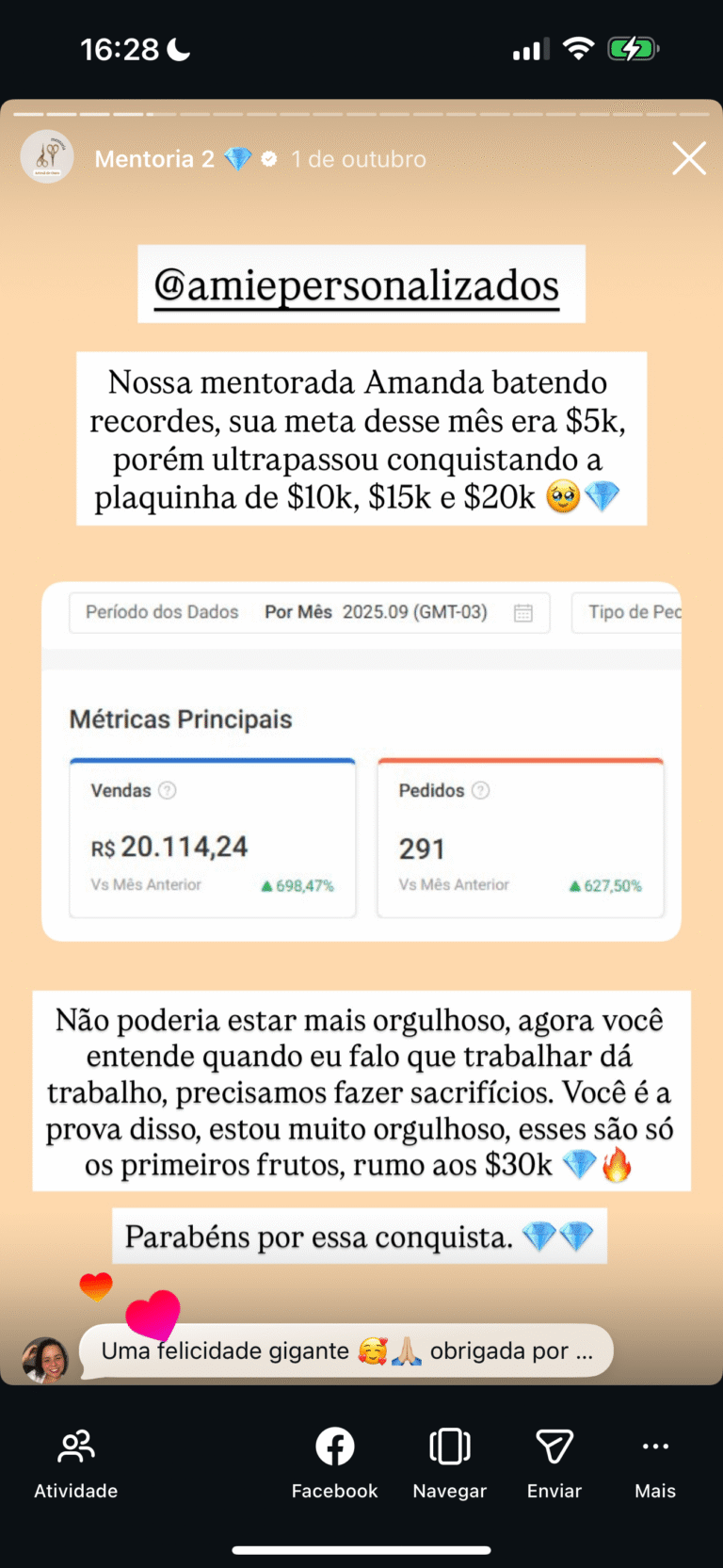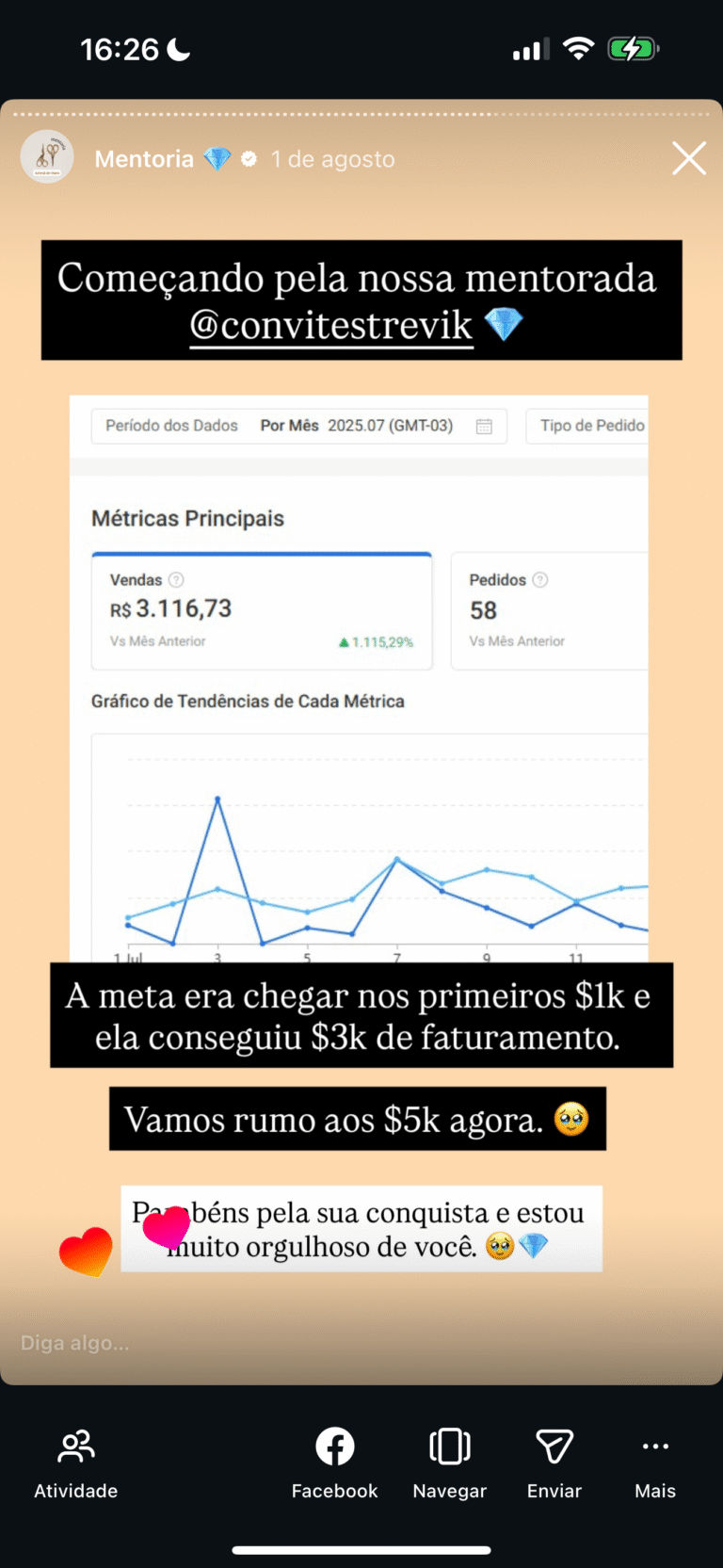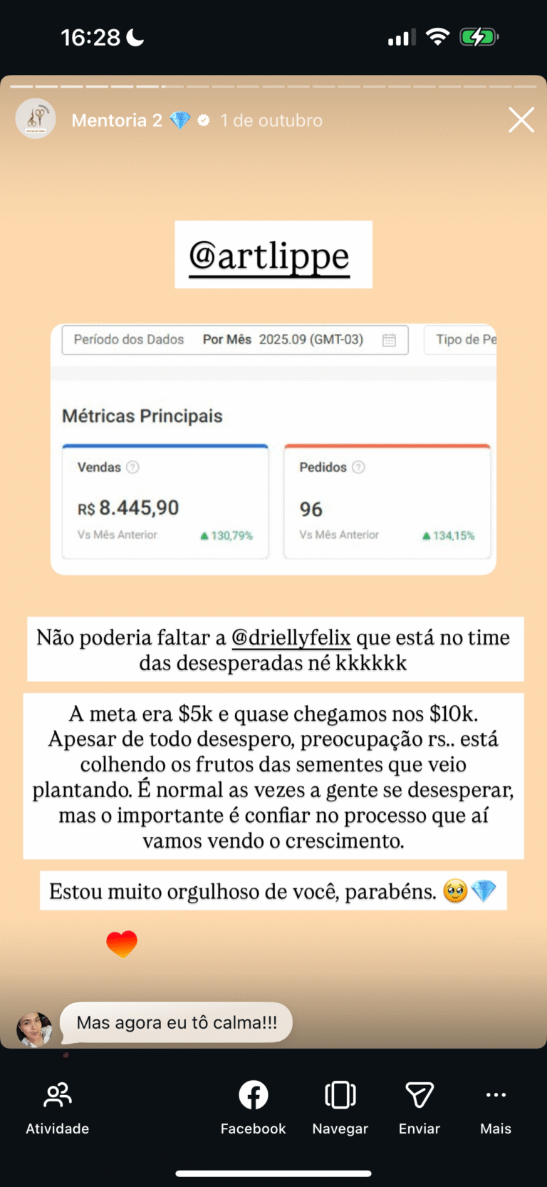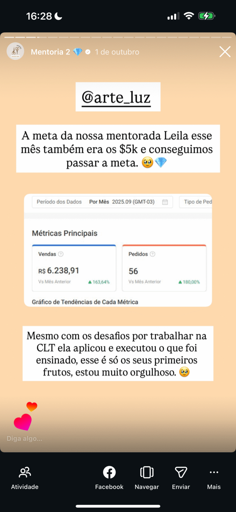 Em março de 2025 passou da sua meta de R$5k de faturamento, chegando a R$6183,49