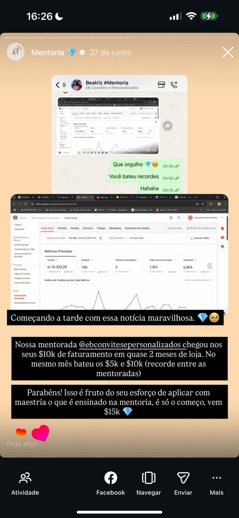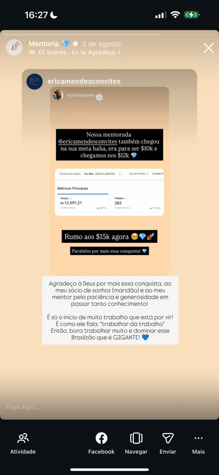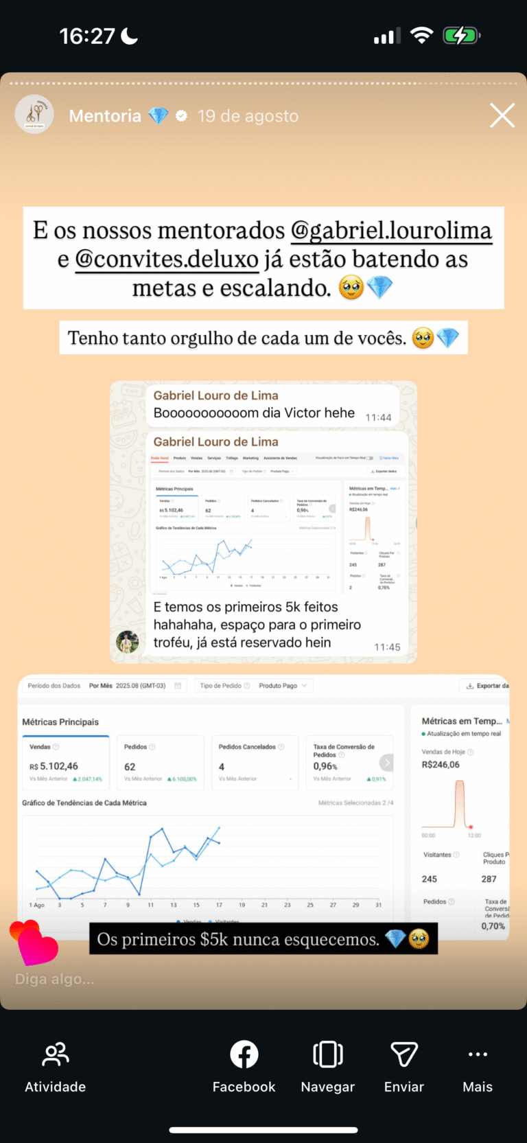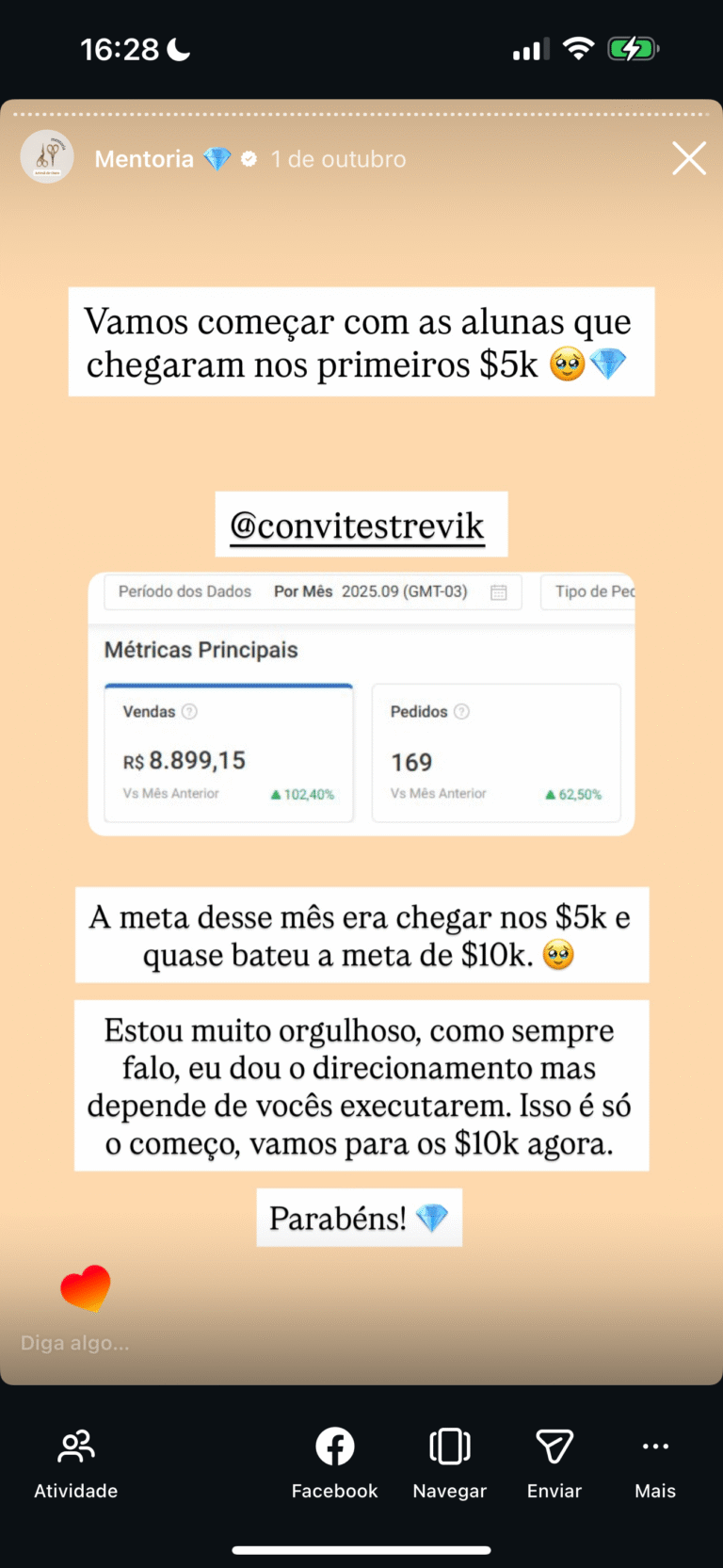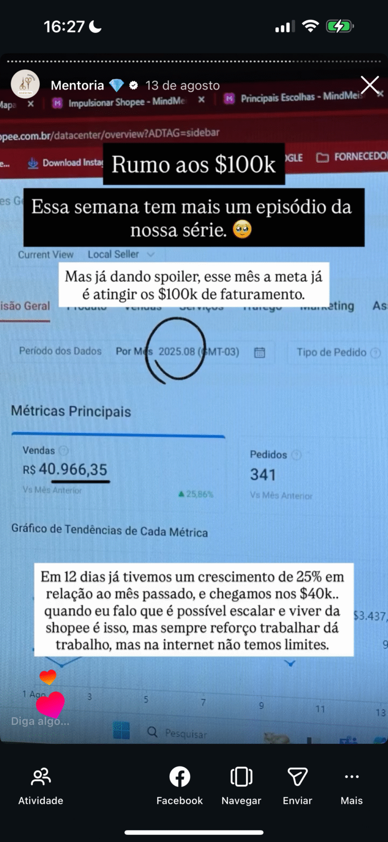 Em março de 2025 passou da sua meta de R$5k de faturamento, chegando a R$6183,49