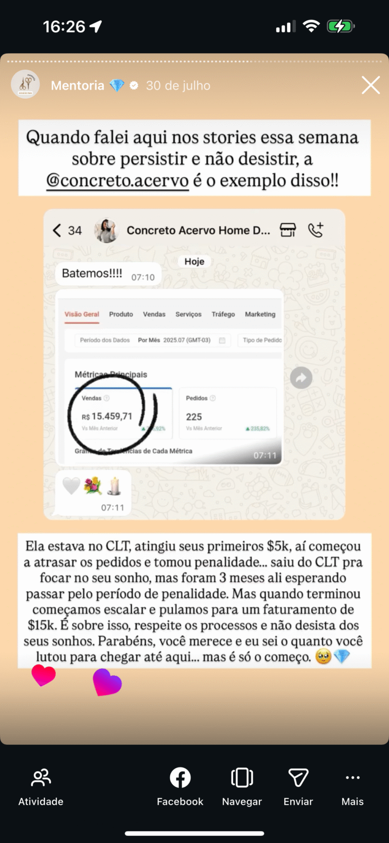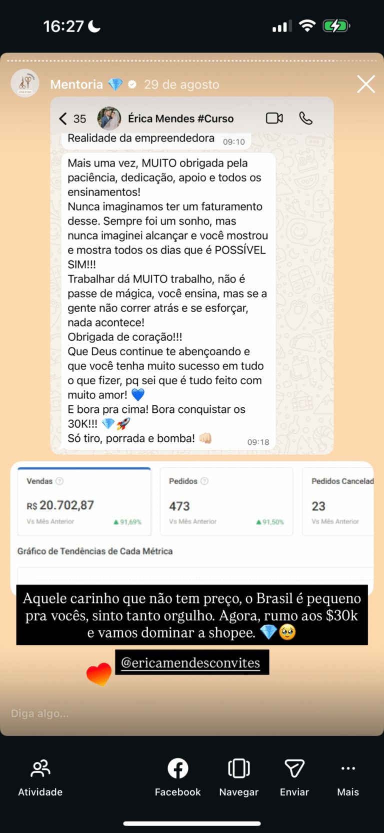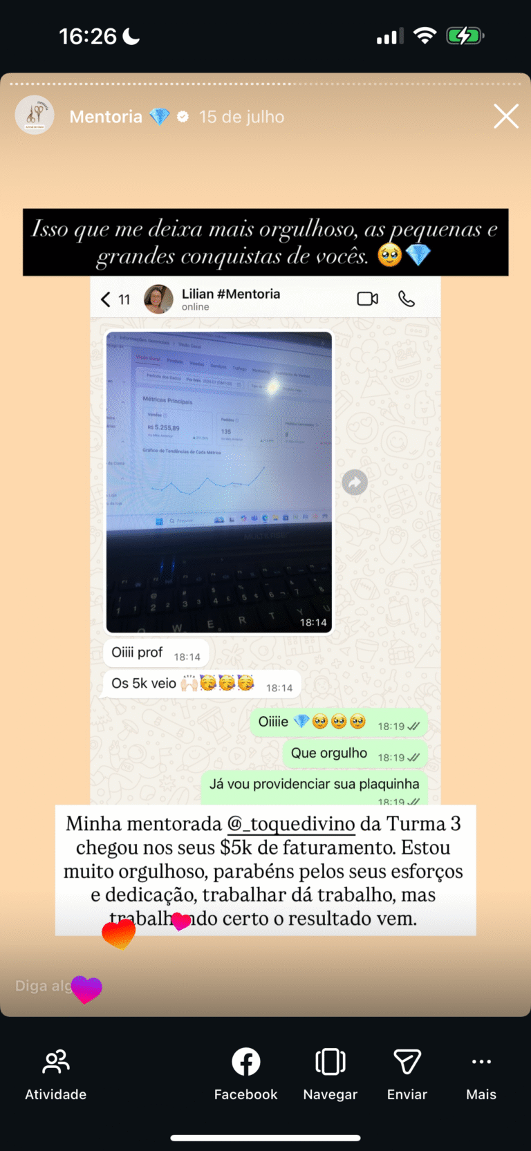 Comunidade exclusiva de suporte e networking no WhatsApp.