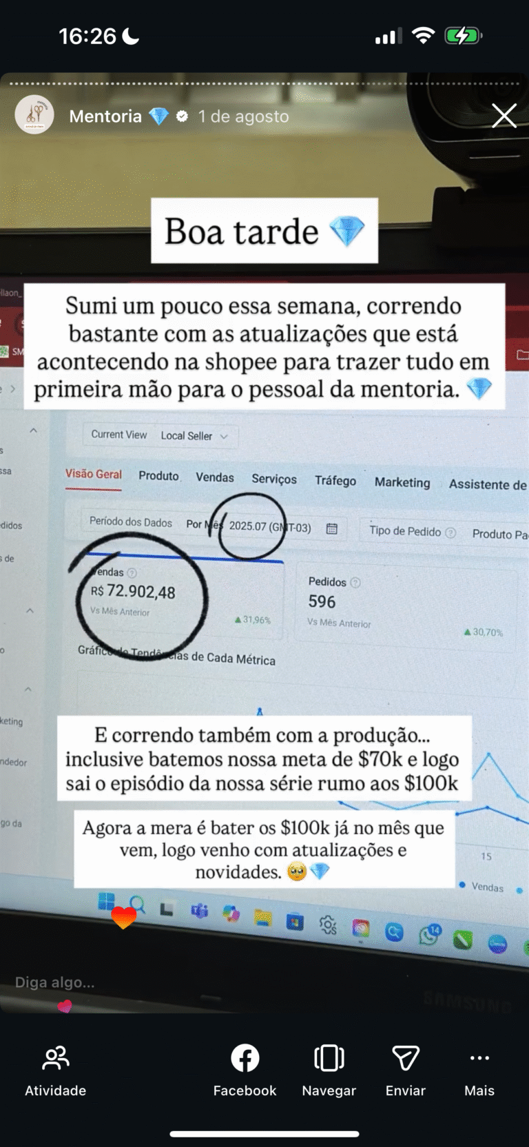 O Método O.U.R.O. é um sistema de 4 etapas que transforma a sua loja da Shopee em uma vitrine estratégica, lucrativa e profissional: