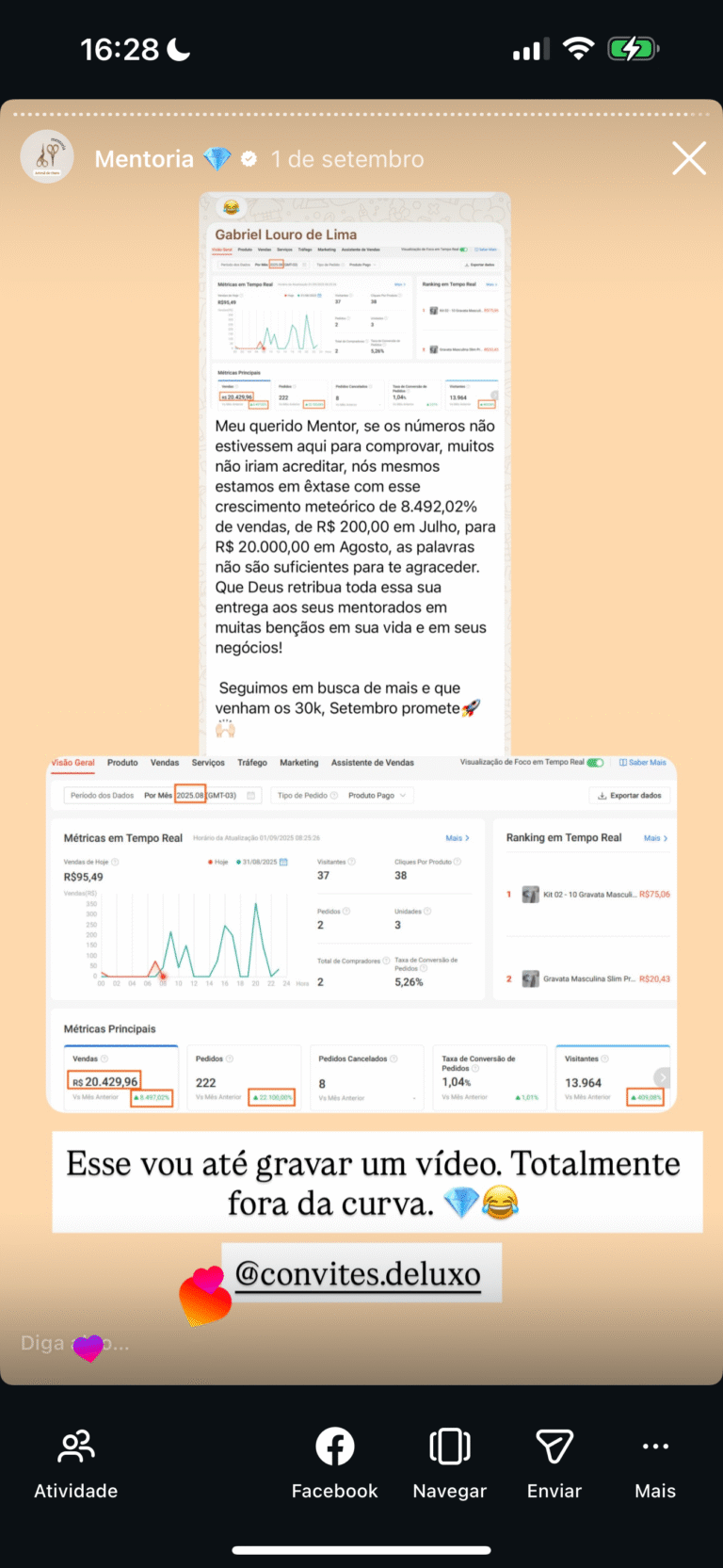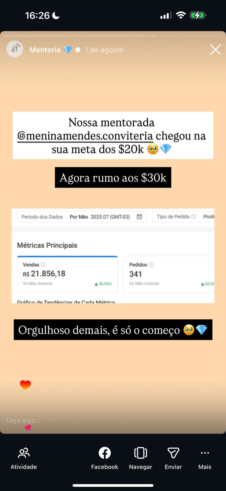 E Agosto de 2025 ela chegou no tão sonhado marco de R$30k de faturamentos mensais.