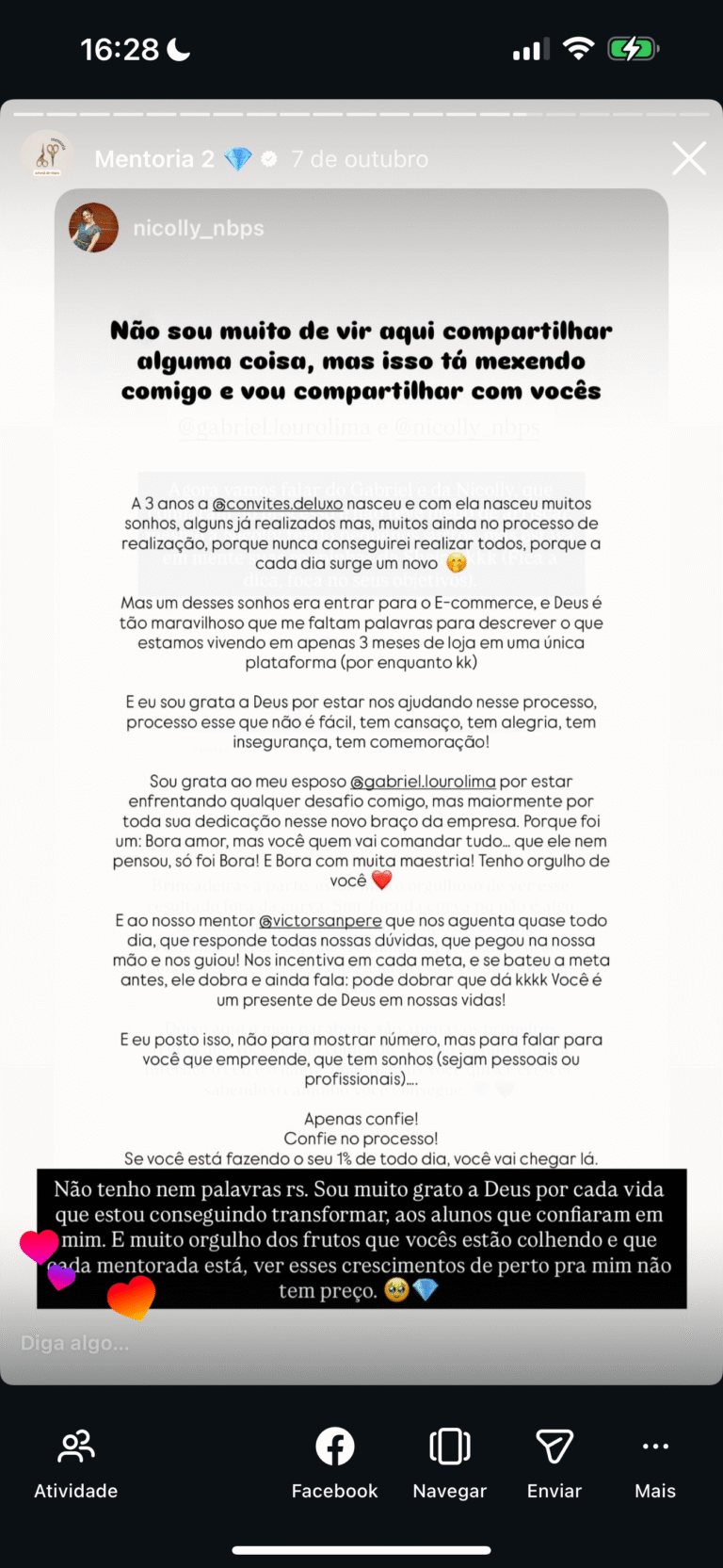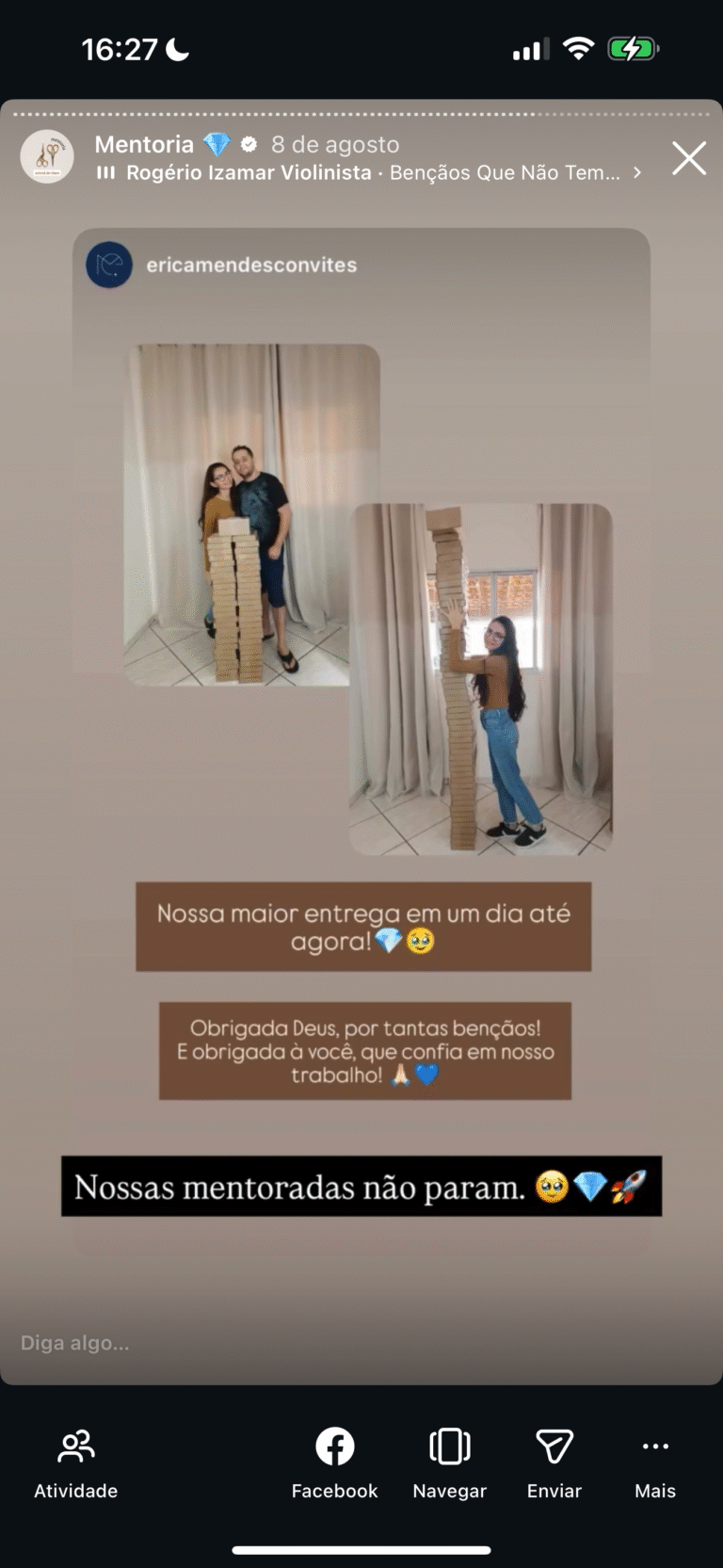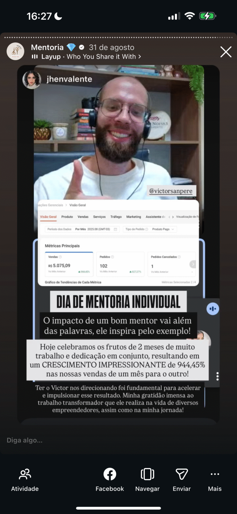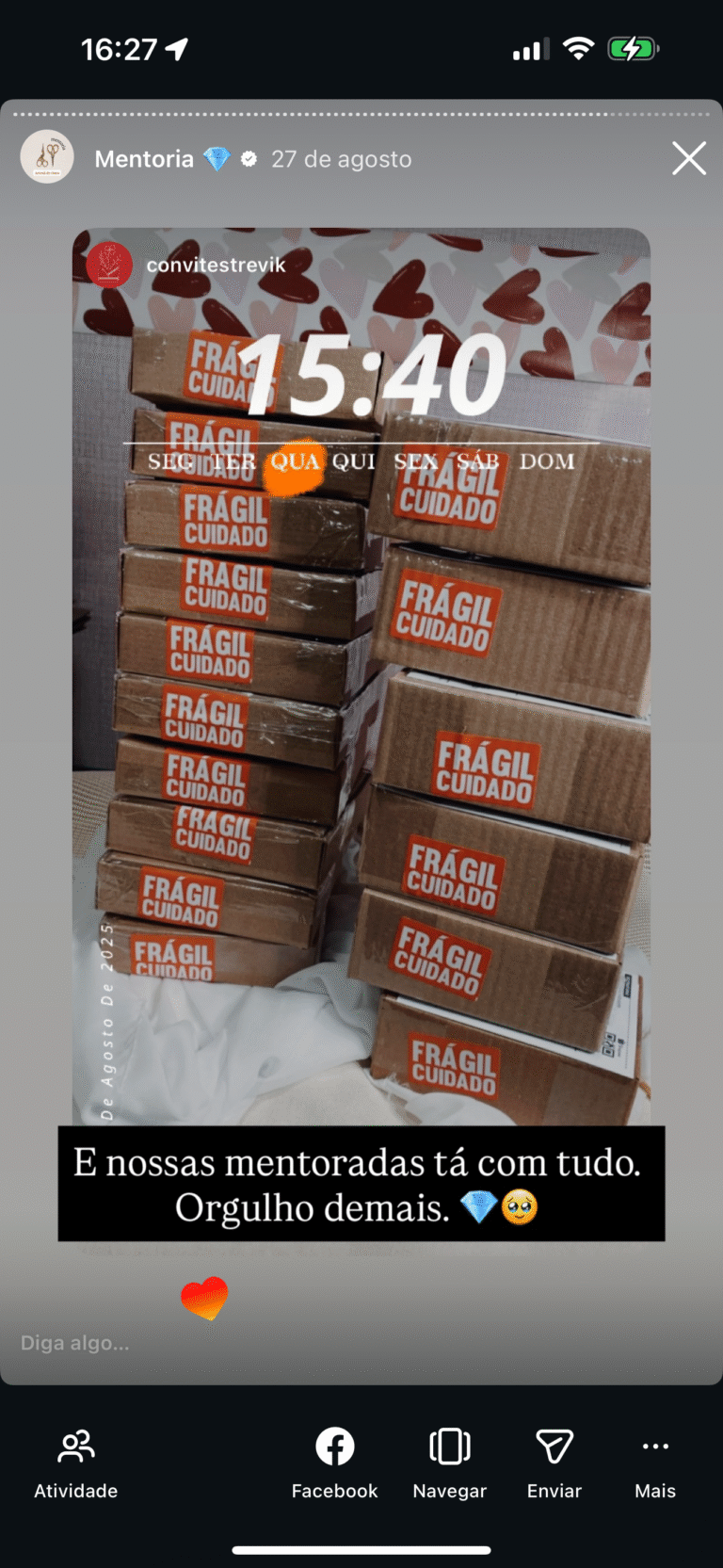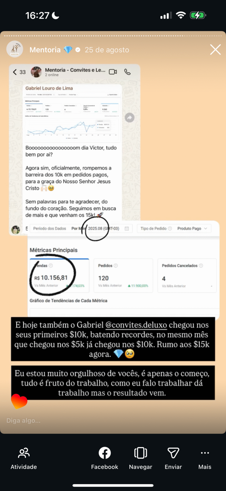 Victor Pereira é filho de calígrafa com gráfico, começou aos 12 anos criando convites com o pai. Aos 20, já trabalhava com design e marketing. Criou o maior acervo de lacres de cera do Brasil, montou uma gráfica com a esposa e, após um momento de virada pessoal, passou a ensinar artesãs a vender de forma profissional. Hoje lidera a Mentoria Artesã de Ouro, com histórias reais de transformação.