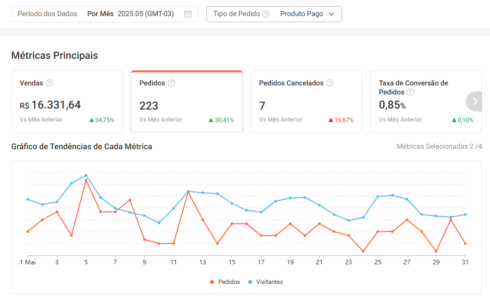Maio de 2025 a meta era R$15k e passou novamente, chegando a R$16.331,64